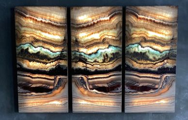 Whether used as feature walls, bar fronts, fireplace surrounds, or countertops, these panels instantly draw the eye. When backlit, they become luminous works of art, glowing from within and showcasing the incredible natural translucency that makes onyx so sought-after. The play of light through each slab brings out intricate layers of honey, amber, ivory, green, and blue — depending on the variety selected — making every installation a one-of-a-kind masterpiece.